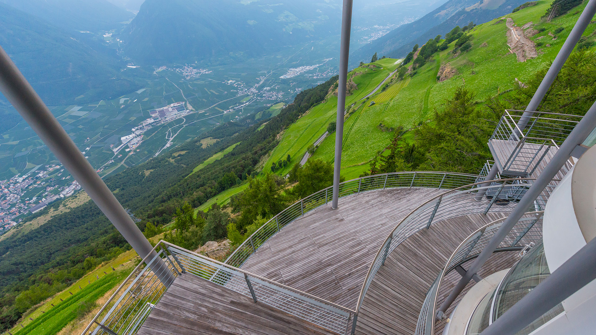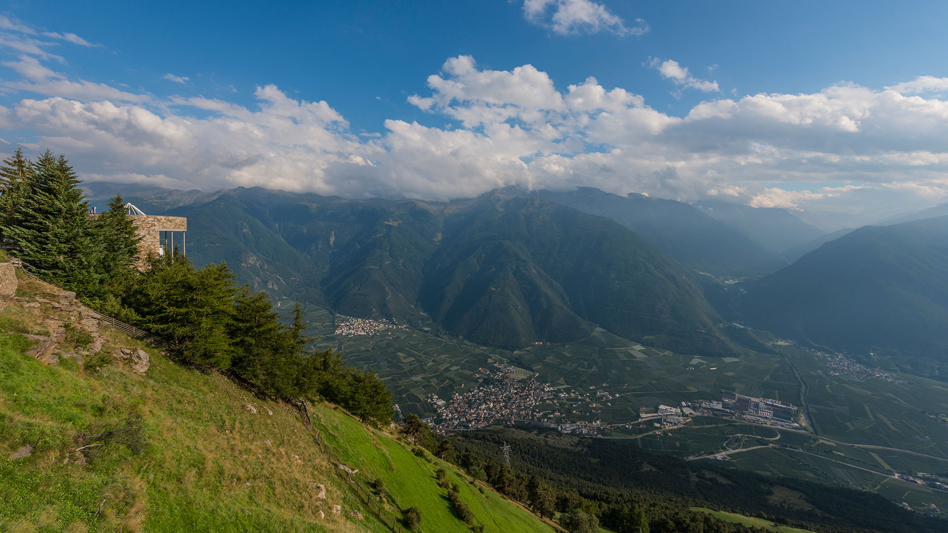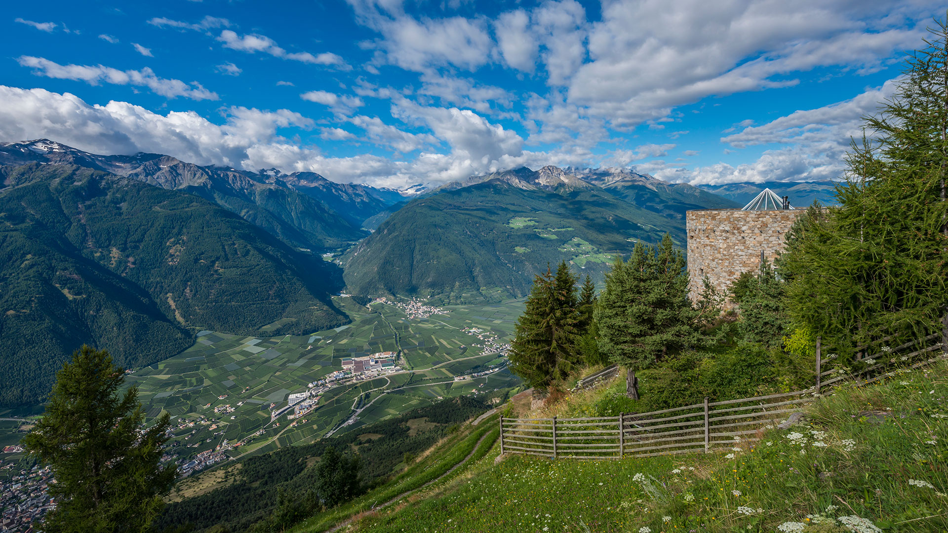 The views range over graceful, undulating cultural landscapes with orchards and vineyards shaped by human intervention and carefully looked after. In times past there was no money in the hard up valley for building ostentatious Renaissance or Baroque churches, which is how the Vinschgau managed to preserve so much Romanesque sacred art and architecture. The inhabitants of this ancient cultural landscape between Reschensee lake and Merano enjoy a reputation for being particularly creative folk. The proof lies in the modern architecture of the Vinschgau, combining traditional materials with new ways of seeing.