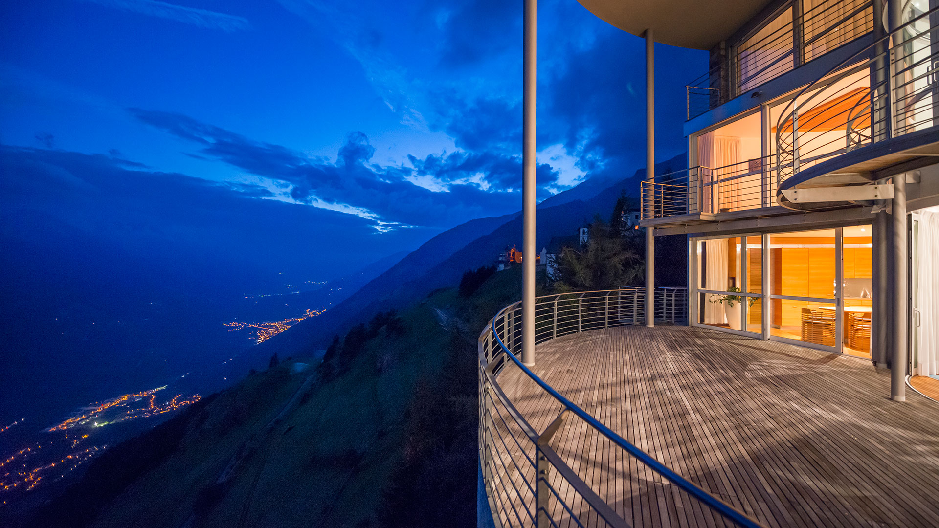Welcome to Turm Chalet – one of the most unusual and beautiful holiday accommodations in South Tyrol. Experience unforgettable days here high above Latsch in the lofty heights of Vinschgau's Sonnenberg, amidst the enchantment of nature.